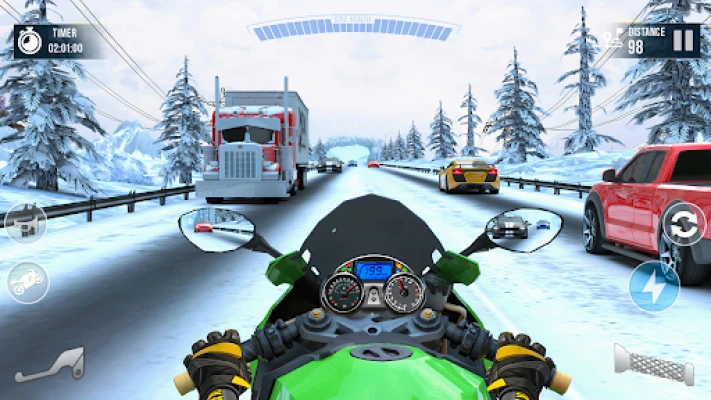 Racing Mode: Dodge traffic, race against time, and experience high-speed traffic rider excitement.