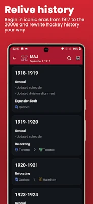 Begin your career from the early days of hockey and lead your team through the ages. Make strategic decisions and leave a lasting impact on the league's history.