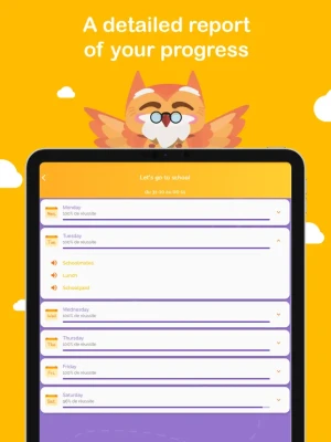 Our teaching method uses an immersive adventure where children learn three words or sentences a day on everyday themes. Using voice recognition, they can practise speaking on their own and improve their pronunciation, developing confidence in their language skills.