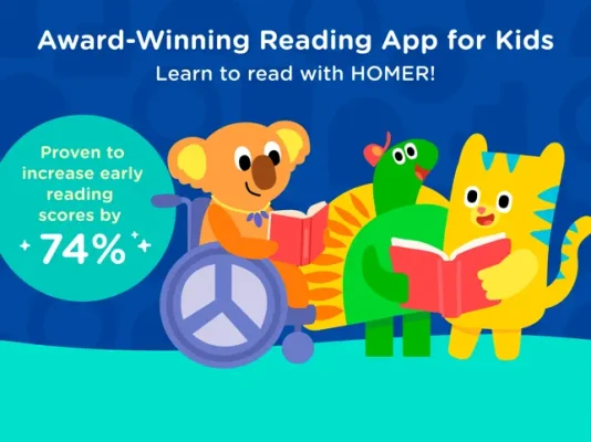 Did you know just 15 minutes a day with HOMER’s educational games for kids is proven to increase early reading scores by 74%? Help your child learn to read with the Homer kids learning academy!