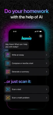 Unlock the power of AI with homie, your go-to app for seamless studying, efficient homework help, and expert guidance. Whether you're tackling math problems, writing essays, or mastering any subject, homie has you covered.