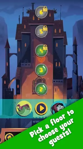 -Multiple floors of silly room service challenges, increasing in difficulty with each floor.