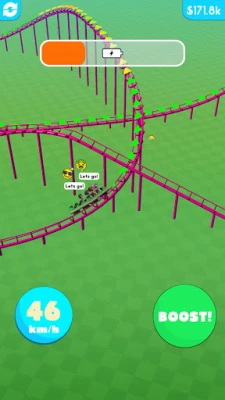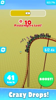 Load up your train, start tapping, and give your hyper roller coaster passengers the theme park ride of their (fleeting) lives! People fly out of the train - lose money. People stay in the train, more money!