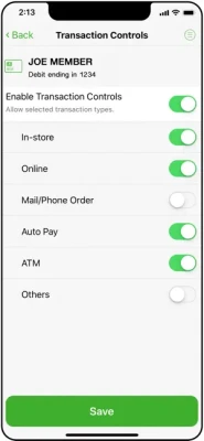 • Enable and disable online and international transactions.