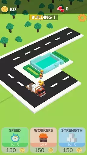 Construct buildings – hire more workers to increase building speed and progress faster. Build living houses but don’t forget about roads and all the required infrastructure – hospitals, schools, gyms, banks, restaurants, sports grounds, gas stations and so on!