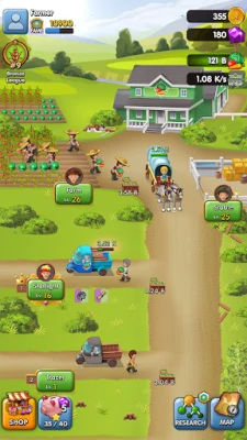 Pocket Farming Tycoon: Idle is different from other idle clicker games because your crops have to be also transported to the village. As much as you will transport the harvest to the village, the village will grow up and become a city soon. You will transport crops from your farm by ferry and later by boat, ship, fast train, or faster airplane.