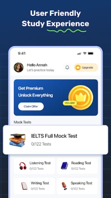 The app features a clean, easy-to-use design that lets you focus on what matters most—preparing for the exam. Smart reminders and personalized notifications will help you stay on track with your IELTS preparation.