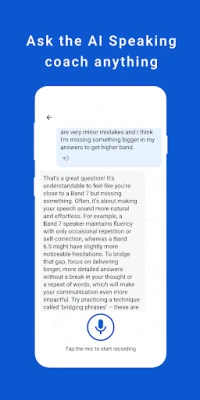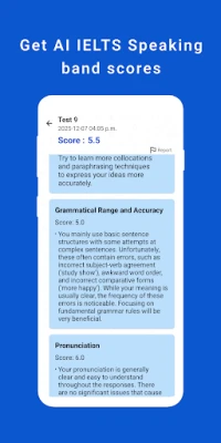 IELTS Speaking - AI Coach is an AI-powered IELTS Speaking practice app. It listens to your answers, scores you like the real exam, and shows you exactly what to improve so you can work toward a higher band.