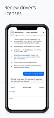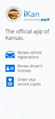 Download the official app of Kansas - iKan - to renew your vehicle and order Vital Records such as birth, death, marriage and divorce, all with the help of a friendly chatbot. Get your certificates with just a couple clicks! Select order by mail or pick up in the office and get notified when it is ready. iKan is offered as a convenience to the Kansas residents.