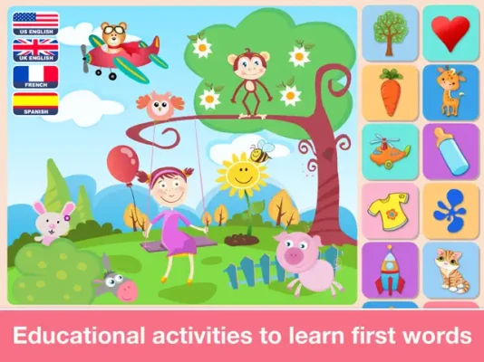 ***** Let your toddler discover world full of fun educational games and learn first words in US English, UK English, Spanish, and French.***** Developed by an award-winning education studios, 22learn, the creator of the best-selling apps for kids, in cooperation with educational specialists to best prepare your children for success in preschool and kindergarten curriculum.