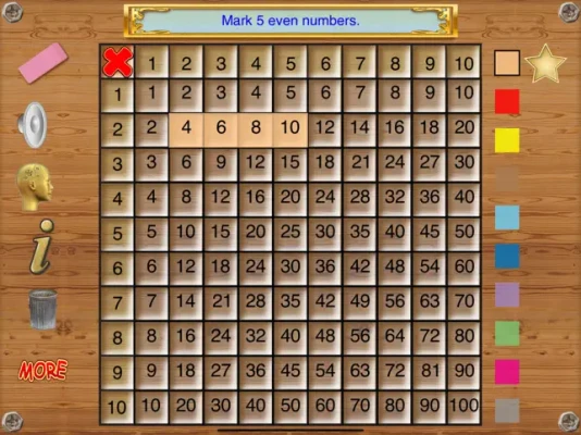 This app challenges the player to find an intersection on a grid where the product of the two multipliers fits the randomly selected problem description. Complete the activities by finding 10 correct answers. The Interactive Multiplication Chart app is designed to be a quick math exercise that teachers can use to provide practice with basic multiplication facts.