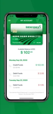 Intermex Mobile App for use with the Intermex Payroll Martercard®. Use the App to monitor all account activity, locate an ATM, transfer funds to other Intermex Cards, update information and freeze your account to prevent unauthorized use.