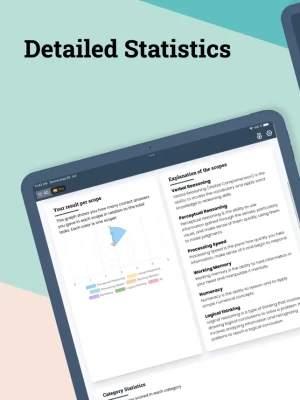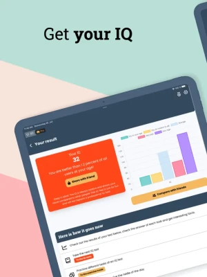 To improve your brain performance, we have added numerous tasks and exercises in the IQ Test app that will increase your performance. So if you are about to take an employment test or a psychological test, you can use it to train your brain and get a better result. The tasks are not only in the IQ test area, but also help to improve logical thinking, math and more.