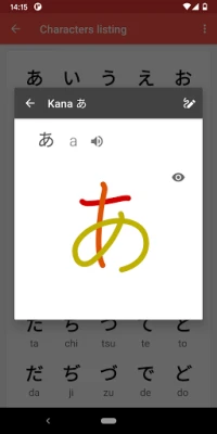 The application is designed to learn Japanese characters, and first of all, kanj. Kanji are the adopted Chinese characters used in the modern Japanese writing system. The application will help you to memorize characters and their basic meanings and readings. There is also Kana section that allow to study and practice Japanese syllabaries, Hiragana and Katakana, which can be very useful for beginners.