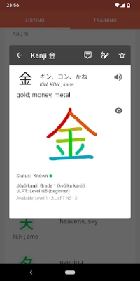 The application is designed to learn Japanese characters, and first of all, kanj. Kanji are the adopted Chinese characters used in the modern Japanese writing system. It will help you to memorize characters and their basic meanings and readings.
