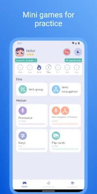 ๐ Pronunciation Practice: Provides exercises to practice pronunciation with accent suggestions, helping you speak Japanese more naturally.