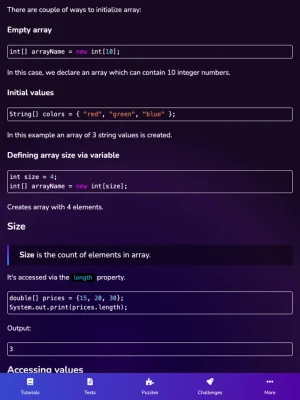 The app contains many challenges. it's suitable for anyone including beginners who wants to learn Java.