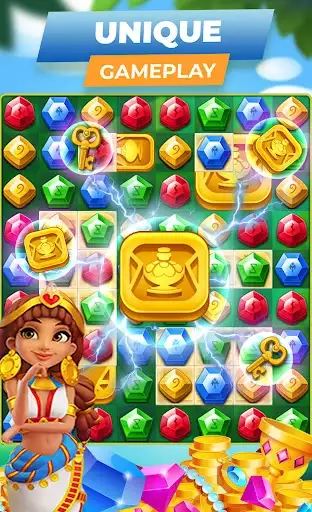 Jewels Legend Match 3: Explore the Fun with new fantastic levels, colorful jewels, different puzzle types, and Enjoy playing without ads with unlimited free coins.