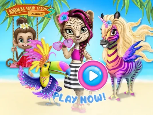 Join millions of kids in new hairstyling and beauty makeover adventures in Jungle Animal Hair Salon 2 kids game! Meet their beloved beauty salon clients at the beach and play new summer holiday makeover and pet care games for kids. Wash, dress up, style and design fun and crazy looks!