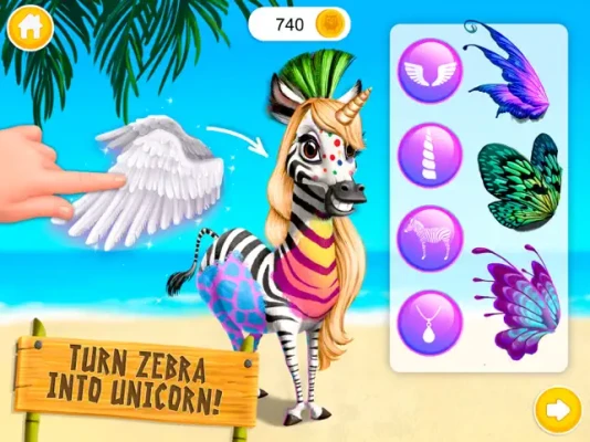 · Try out different hairstyles and outfits and create a magical look for zebra Gizelle!