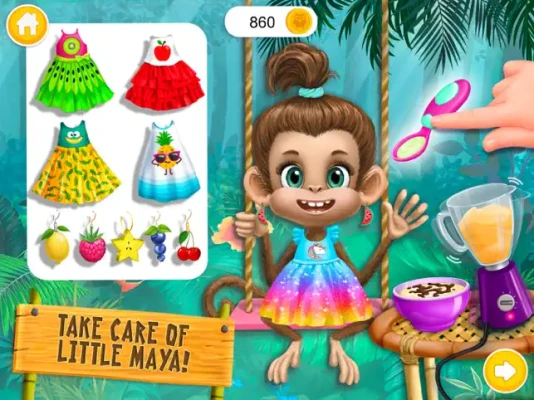 · Clean up hungry monkey Maya, feed her, dress up and do an amazing hairstyle!