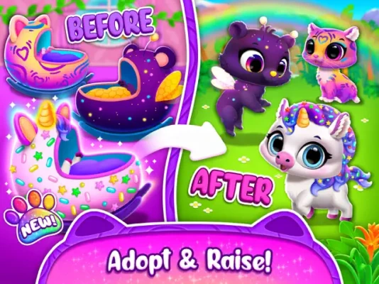 Welcome to the jungle! Adopt and grow your cute jungle pet collection and take care of them! Decorate their house and play fun pet games!