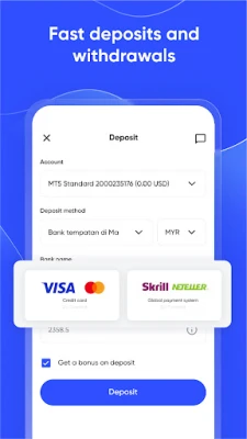 - Fast deposit/withdrawal.
