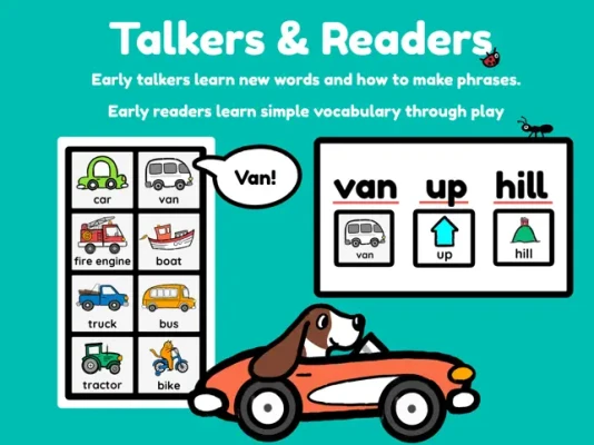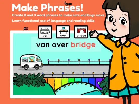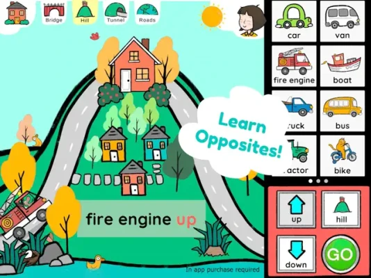 Combine words to create 2 and 3 word phrases and make the scenes come to life with cars and bugs! Explore 35 word buttons about cars, bugs, and opposites. Great for speech therapy, early talkers and readers.