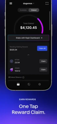 Explore the world of interoperable blockchain applications in the Cosmos ecosystem and beyond, with multichain support and activity from over 100k global users. From the convenience of your mobile device, you can stake tokens, manage earnings, participate in governance, and connect to DeFi applications all in one place.