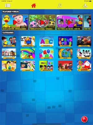 • Over 16 categories of content ranging from Nursery Rhymes to Learning Colors, from Shapes to Learn Vehicle Names, from Alphabets to Phonics, from Numbers to Stories