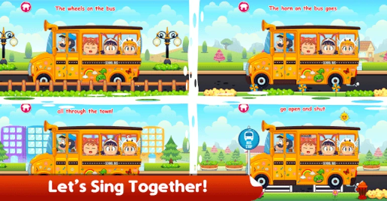 > 6 fun and educational mini games including Memory Games, Coloring Books, Sticker Books, Super Drive, Racing, and School Bus.