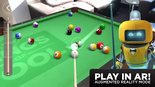 With AR, you can spawn a life sized table on any surface. The mode features realistic ball physics and stunning 3D graphics. AR mode is fully customizable using your custom table felt and decals.