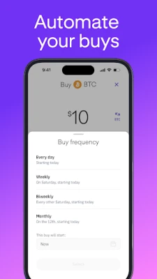 • Buy crypto in fixed amounts over time to benefit from dollar-cost averaging (DCA)