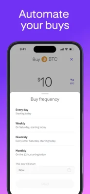 • Buy crypto in fixed amounts over time to benefit from dollar-cost averaging (DCA)