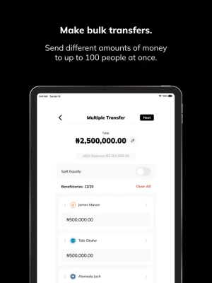 Send different amounts or the same amount to many people at once.