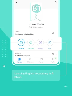 Most words use both example and pictures to help learners learn faster and easier. Features like flashcard and vocabulary quiz help learners assess their progress.
