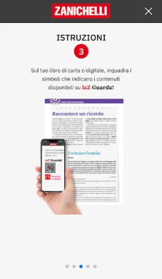 Con laZ Guarda! accedi dallo smartphone ai contenuti multimediali associati al libro di carta, in modo immediato e senza doverti registrare. Inquadra con la fotocamera il simbolo speciale sulle pagine del libro o le immagini contrassegnate dall'icona laZ Guarda! e il gioco è fatto!