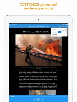 * Transcript tracking: the audio transcripts are highlighted and auto scrolled to help you focus on listening