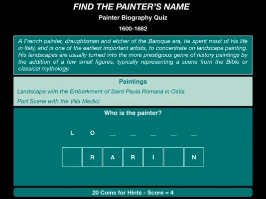 With Learn Art you will learn to recognize the paintings of the greatest artists of history and to recognize their style.