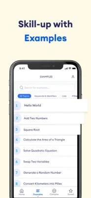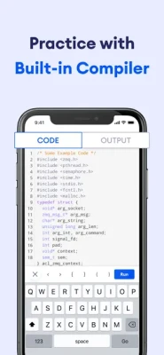 To make learning C more interesting, the app provides dozens of practical examples that you can edit and run on the C compiler. You can also use the online C compiler and write and run your C code from the scratch.