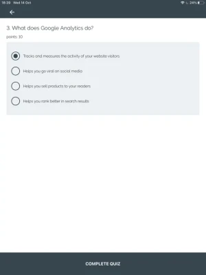 You earn points by passing a quiz after every chapter! This is the next level of learning digital marketing!