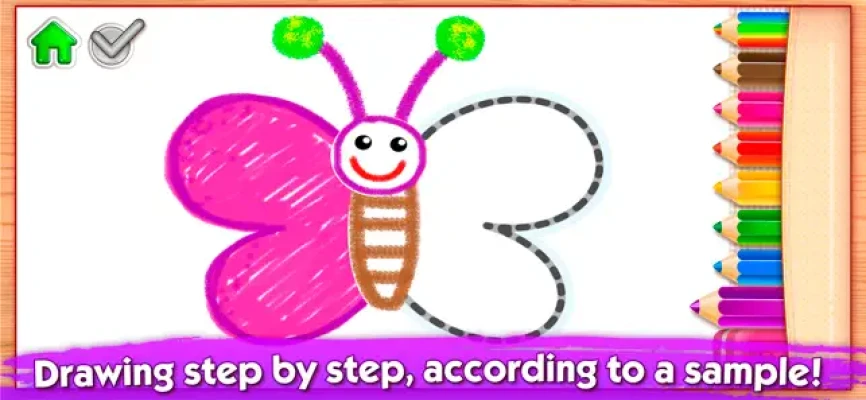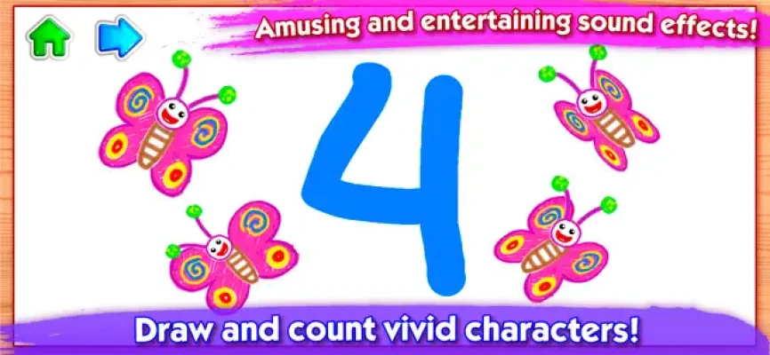 In this educational game, children will follow step-by-step instructions to draw a cute character - a sun, butterfly, snail... And then count them.