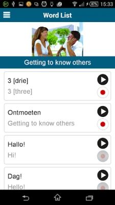 Learn Dutch! - "Learn Dutch 50 languages" (www.50languages.com) contains 100 lessons that provide you with a basic vocabulary. This free app has 30 lessons. With no prior knowledge, you will learn to fluently speak short sentences in real-world situations in no time.