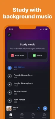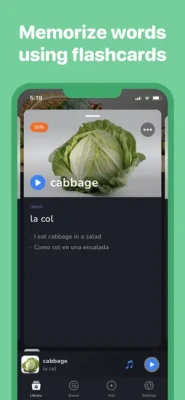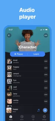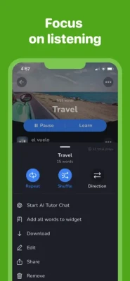Learn new English or Spanish vocabulary by listening to words and one-on-one AI tutoring. It's a unique way to learn new words: memorize them by listening to their audio mixed with background music, and chat with AI to practice your vocabulary.