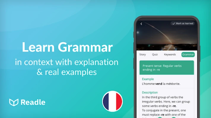 Readle is the best companion for your language learning education & upcoming language learning tests to get ahead. Download Readle and start to learn French!