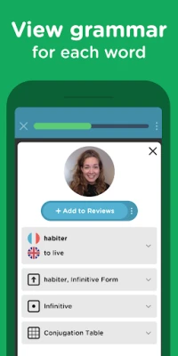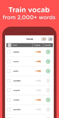 You've never seen vocab flashcards like these before. They combine video, speaking practice, and embedded grammar to create a fun and effective experience to learn French. This vocab learning feature is also a part of our free content, so you can start creating your own vocab lists and review your vocab regarding your needs.
