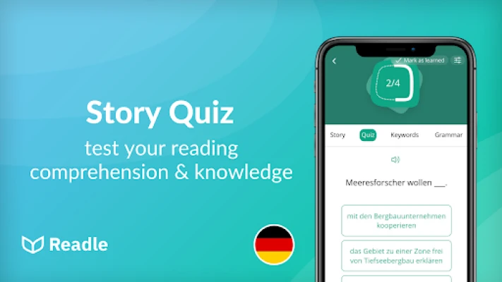 A must-have app for learning German for travel, daily life, or exam preparation. Readle is your best companion for mastering German!