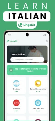 Learn Italian - Lingokit gives tourists and business travelers everything they need: clear categories, native audio, and full offline access.