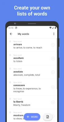 ReWord is a highly effective foreign language learning app. It is your best tool to learn Italian and improve your vocabulary. Did you know you can learn languages just taking 5-10 minutes a day? With our interval system, your Italian lessons will reach a new level. And will give you greater results, of course!