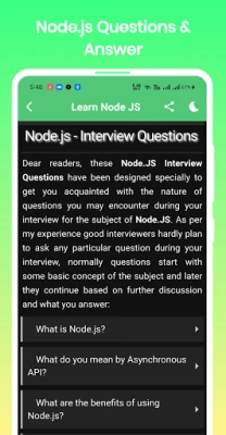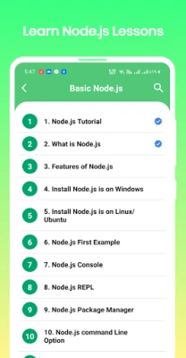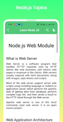 Learn Node JS has a really simple user interface. it is the best app to let you learn the Node programming language for free. Download the app now to become a Learn Node JS.